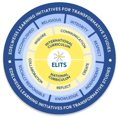 ELITS Curriculum merupakan integrasi antara kurikulum internasional dan kurikulum nasional. Pendekatan ini dirancang untuk memberikan pengalaman belajar yang seimbang antara standar akademik global dan penguatan karakter serta wawasan kebangsaan.